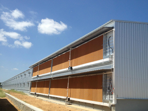 ZR濕簾降溫系統(tǒng)的降溫過程是在基核心-ZR紙墊內(nèi)完成的。在波紋的纖維紙表面有層薄薄的水膜,當室外干熱空氣被風機抽吸穿過紙墊時,水膜上的水會吸收空氣中的熱量進而蒸發(fā)在水蒸氣,這樣經(jīng)過處理后的涼爽濕潤的空氣就進入室內(nèi)了。這自然的過程猶如風吹過水面一樣。